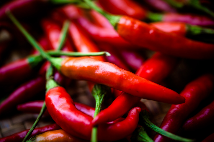 พริกสด ความเผ็ดซู่ซ่าของพริกคืออยากกระตุ้นให้ร่างกายหลั่งน้ำลายออกมา จากนั้นเอนไซม์ของน้ำลายจะช่วยย่อยแป้งให้อ่อนตัวลง กระเพราะกับลำไส้จะได้ไม่ต้องทำงานโหลดจนเกินไป